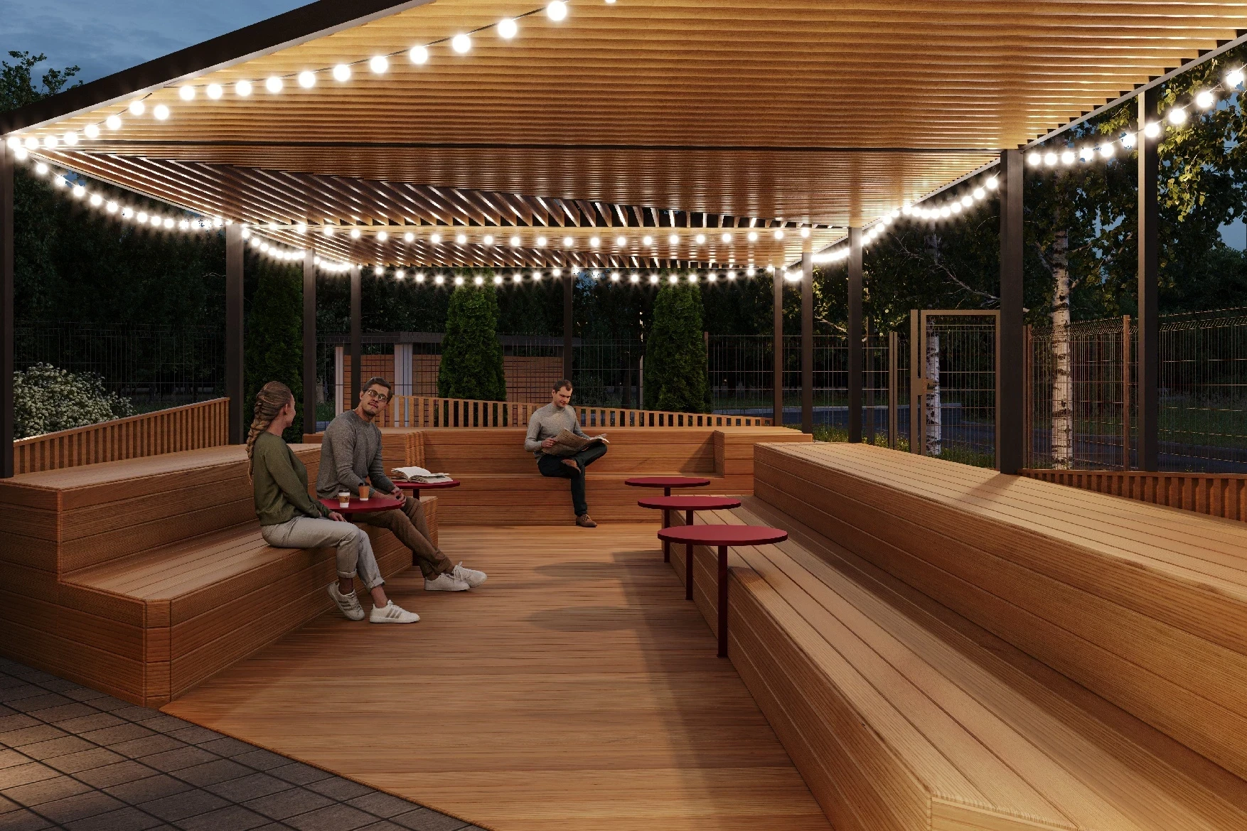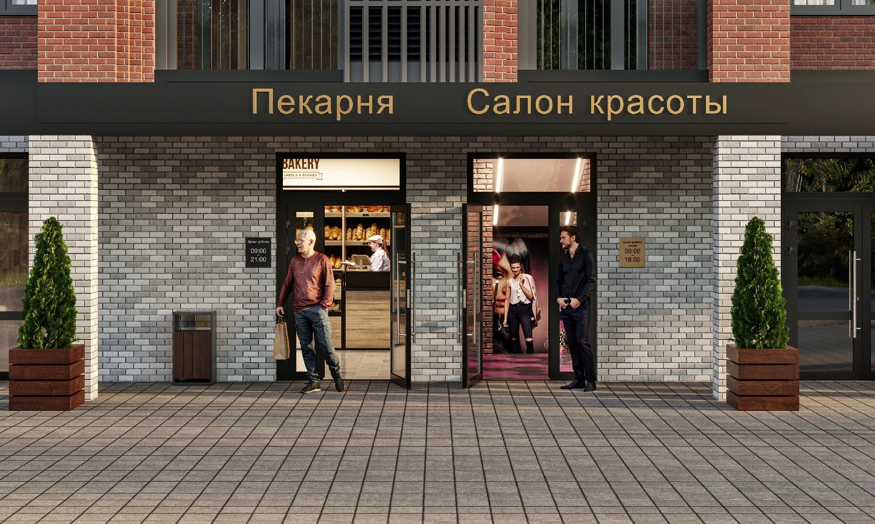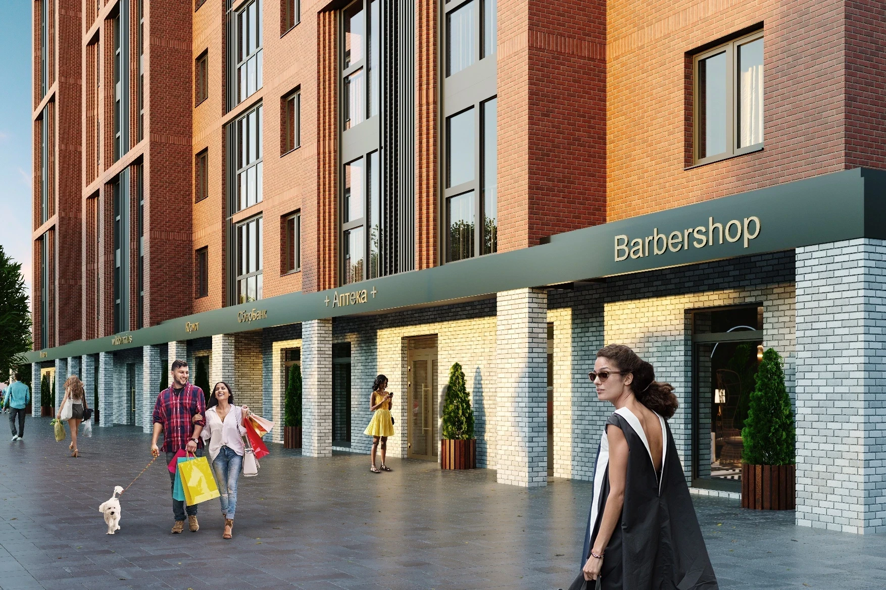 Благоустройство прилегающей территории включает в себя организацию детских игровых и спортивных площадок, гостевой автостоянки, а также озеленение. Первый этаж займут коммерческие помещения. В шаговой доступности находятся детские сады, школа, магазины и остановки общественного транспорта.